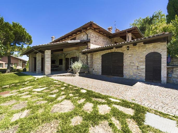 Gli spazi esterni offrono un giardino privato, un porticato con barbecue e forno a legna, oltre a un camino scenografico, connessione Wi-Fi gratuita e posti auto riservati.