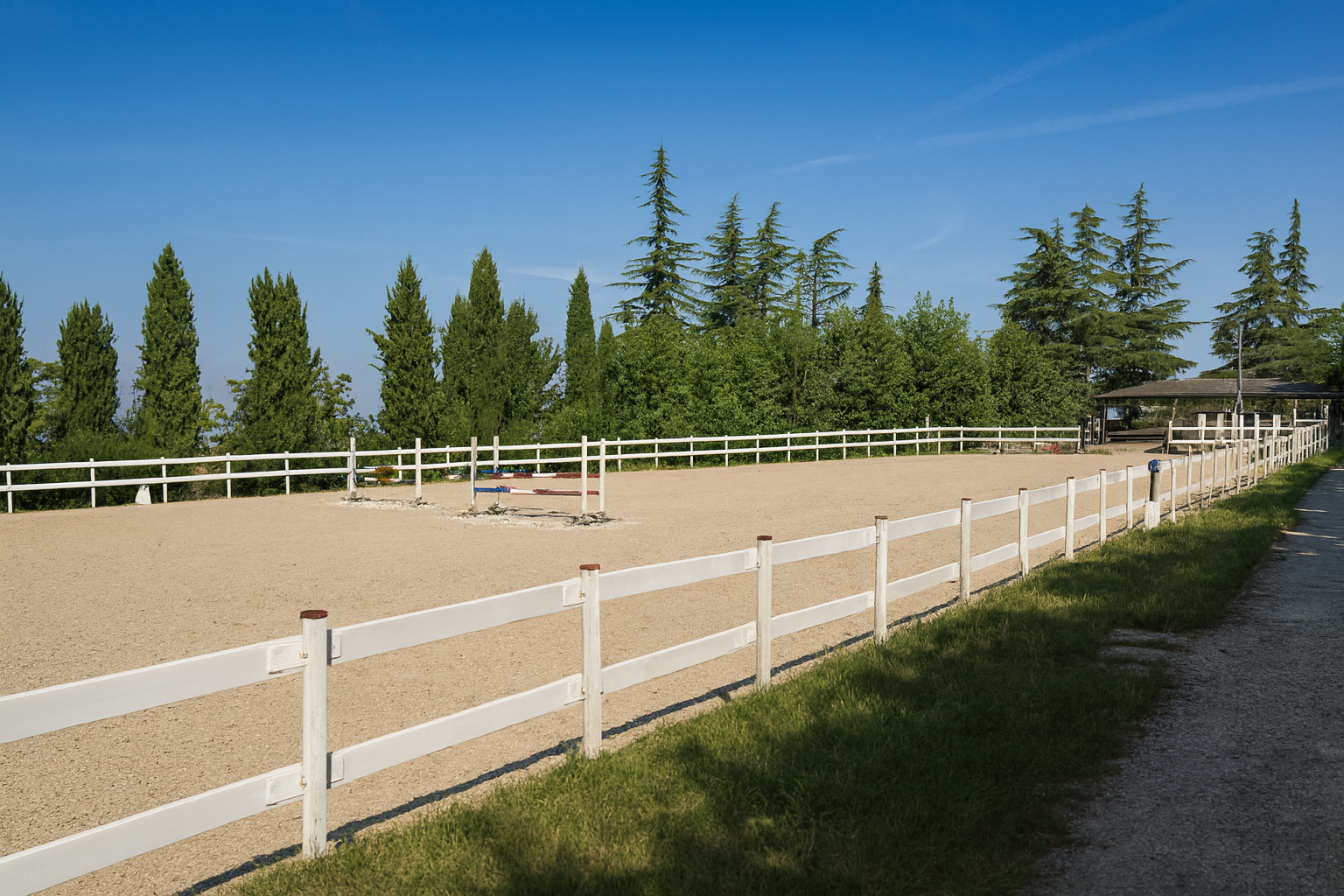 A pochi passi dalla Residenza, immerso nelle morbide colline dei Castelli Piacentini, si trova un centro ippico esclusivo, circondato da un paesaggio incontaminato a 450 metri di altitudine. La struttura offre ambienti curati e una quiete naturale che rende ogni esperienza a cavallo particolarmente piacevole. Gli ampi spazi includono un elegante maneggio coperto con tribuna, due campi esterni perfettamente mantenuti, un tondino, una giostra per quattro cavalli e vari paddock immersi nel verde. Completano il centro una club house con camino e affaccio privilegiato sul maneggio, selleria, spogliatoi e i locali dedicati al personale. Un luogo riservato, ideale per chi desidera vivere l'equitazione in un contesto sereno, raffinato e armonioso.
